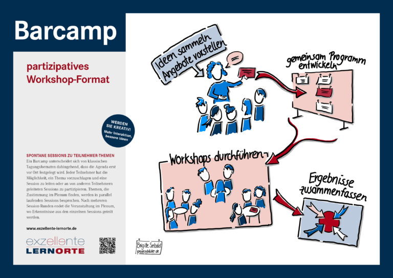 Ein Barcamp bietet die Möglichkeit, sich in einer dynamischen und offenen Umgebung weiterzubilden, innovative Ideen zu entwickeln und neue Kontakte zu knüpfen. Es unterscheidet sich von klassischen Tagungsformaten dahingehend, dass es nicht bereits im Vorfeld durchgeplant ist – es wird nur der grobe Rahmen festgelegt, die genaue Agenda entwickeln die Teilnehmer selbst erst vor Ort.