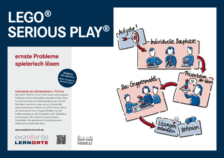 Das Spiel mit LEGO®, wie wir es kennen, zielt darauf ab, eine strikte Bauanleitung zu befolgen, um Nachbildungen realer Gegenstände zu erhalten. Die Methode des LEGO® SERIOUS PLAY® (LSP) dagegen soll Menschen ermöglichen, ihrer Kreativität freien Lauf zu lassen, um abstrakte Themen oder Ideen, Blickwinkel oder Emotionen darzustellen.